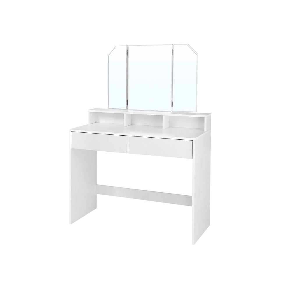 Kaptafel met inklapbare spiegel en 2 lades wit