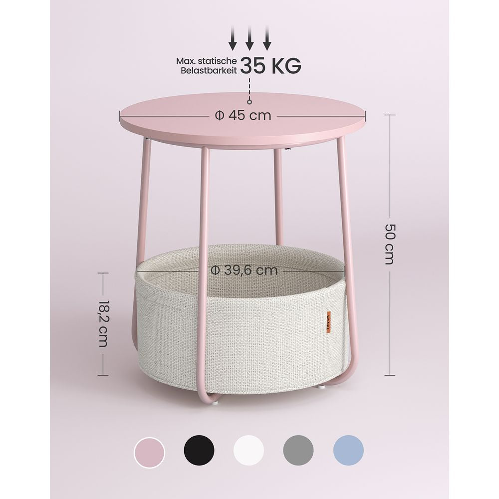 Ronde bijzettafel met stoffen mand - Pastelroze/Wolkenwit